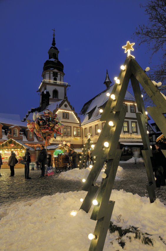 Der Erbacher Weihnachtsmarkt rund um das Schloss und im „Städtel“, die historische Altstadt mit wunderschönen Fachwerkhäusern, ist Anziehungspunkt im Odenwald.
